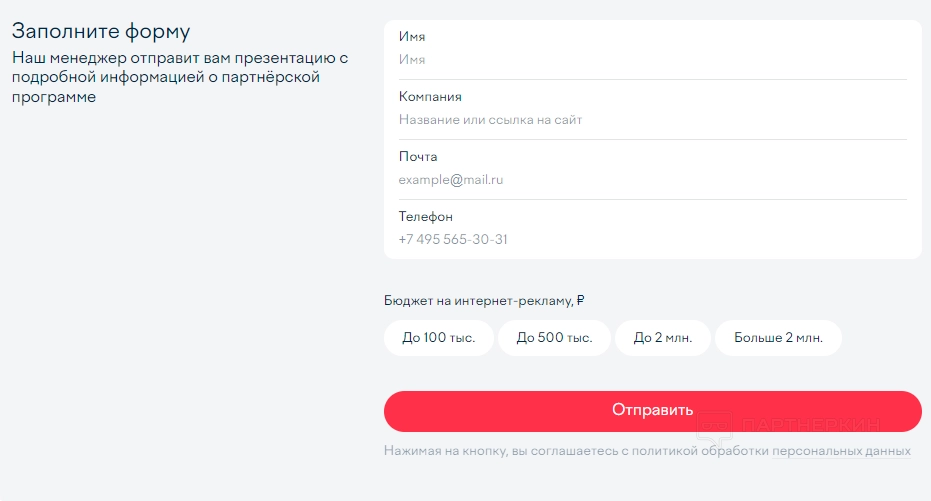 После заполнения формы необходимо нажать кнопку «Отправить». Менеджер платформы K50 отправит пользователю презентацию с подробной информацией о партнерской программе.