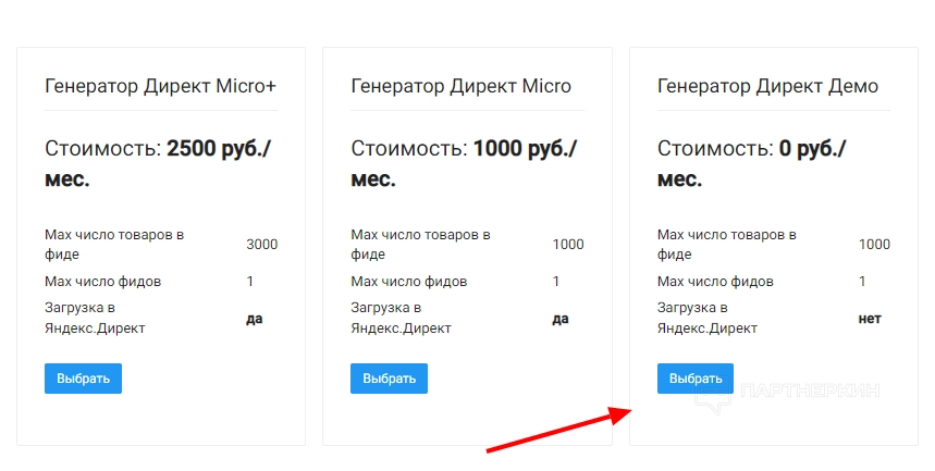 2. Пролистать вниз страницы и выбрать «Генератор Директ Демо».