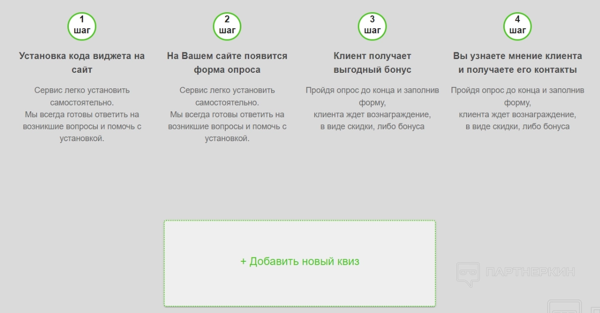 Рекомендуем сразу использовать почту, так как бот может определенное время не отвечать на сообщения. Как только пользователь пройдет регистрацию, он сможет создать свой первый квиз, но для начала нужно будет указать номер телефона, имя и адрес сайта. Если сайта нет, то можно его не указывать.