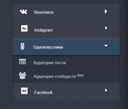 Источниками аудитории являются 4 социальные сети, однако придется не только их подключать в личном кабинете, но и некоторые из них оплачивать как дополнительные функции к основному тарифу.