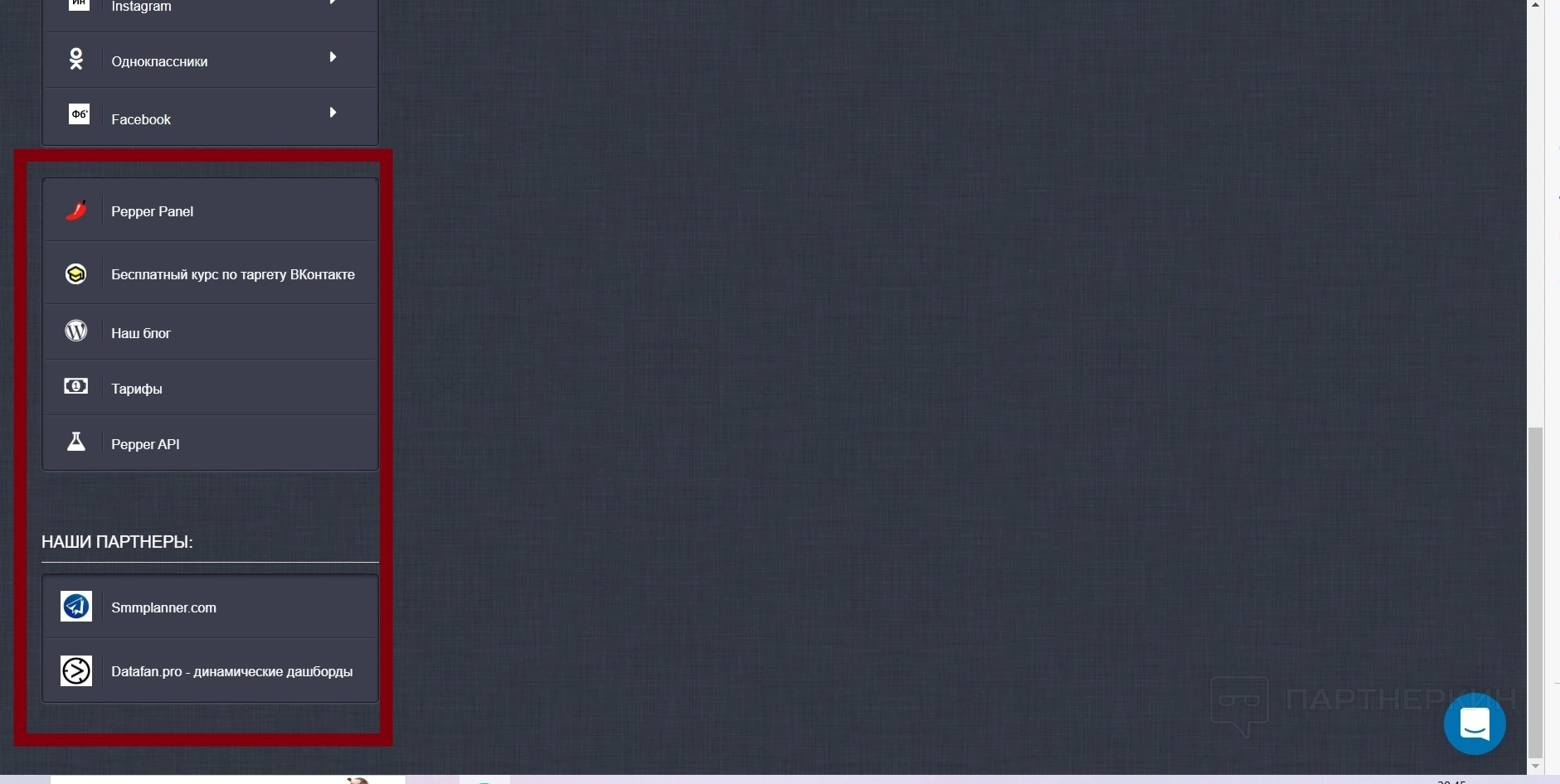 Второй раздел меню в основном представляет собой набор существующих в сервисе инструментов. Есть как общие, так и для каждой из социальных сетей: