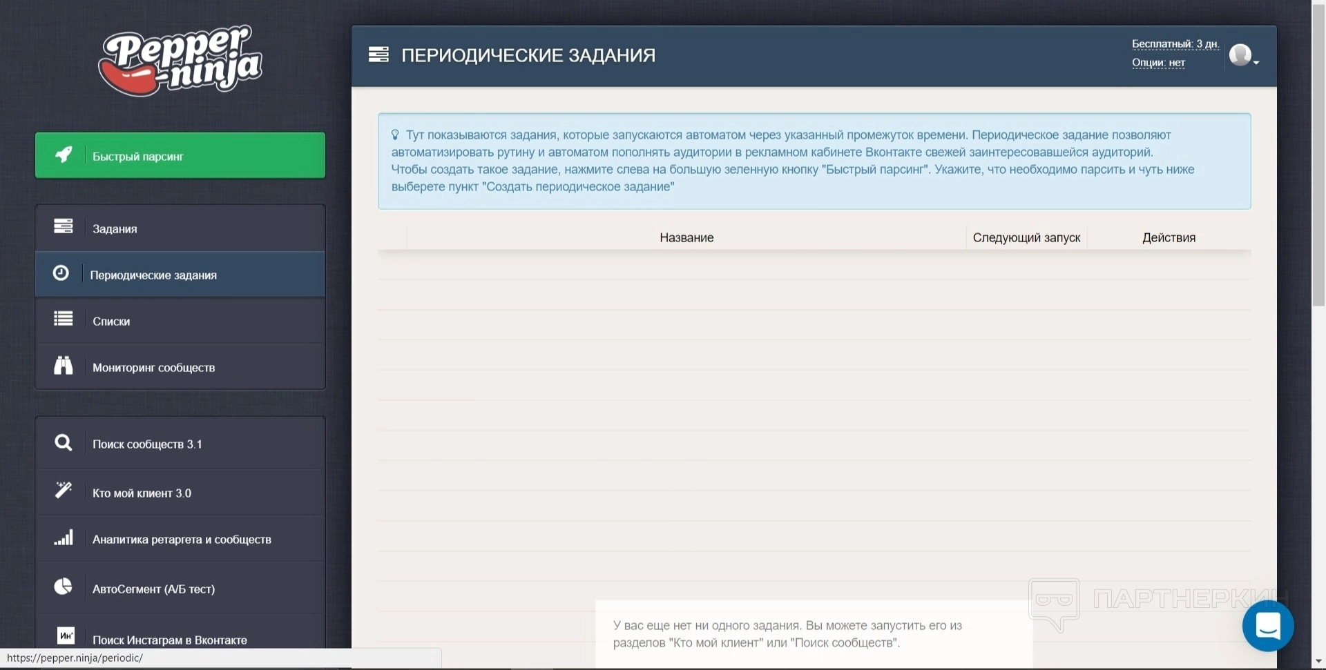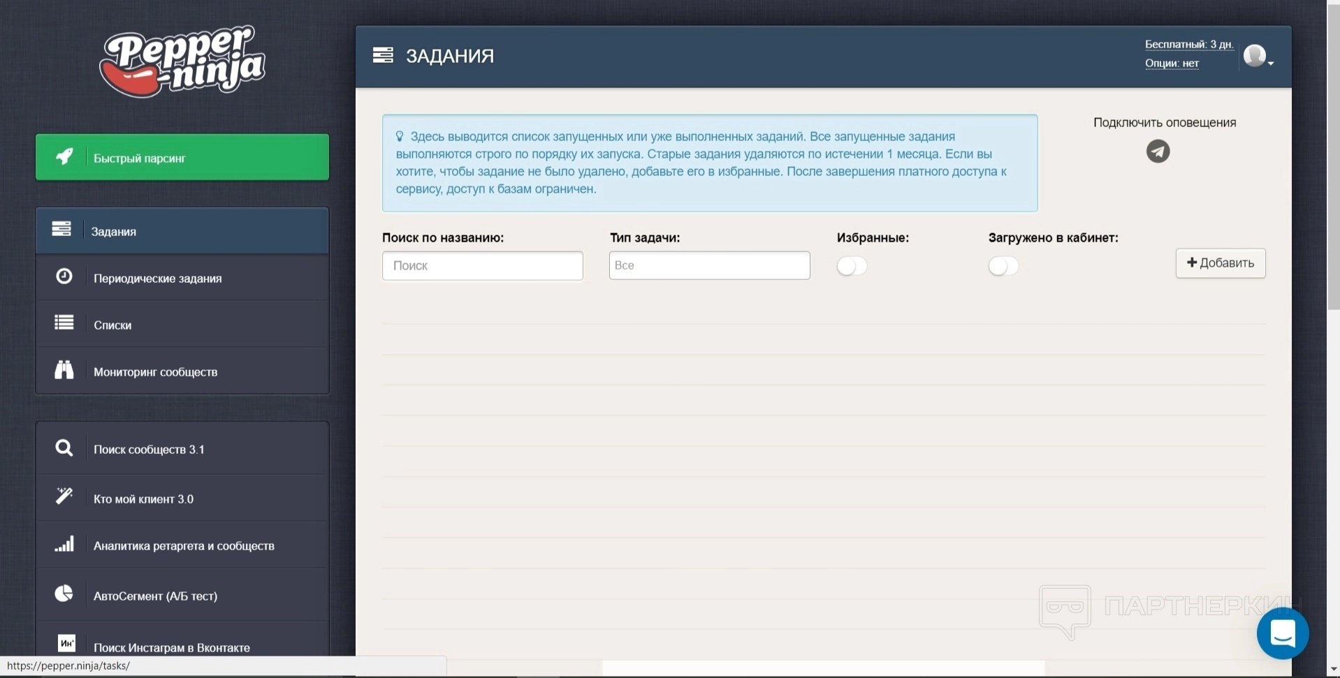 В разделе задания находятся весь список когда-то запускаемых или действующих заданий. Срок их хранения 1 месяц (при наличии оплаченного тарифа), самые важные можно добавлять в избранное, чтобы их не удалили: