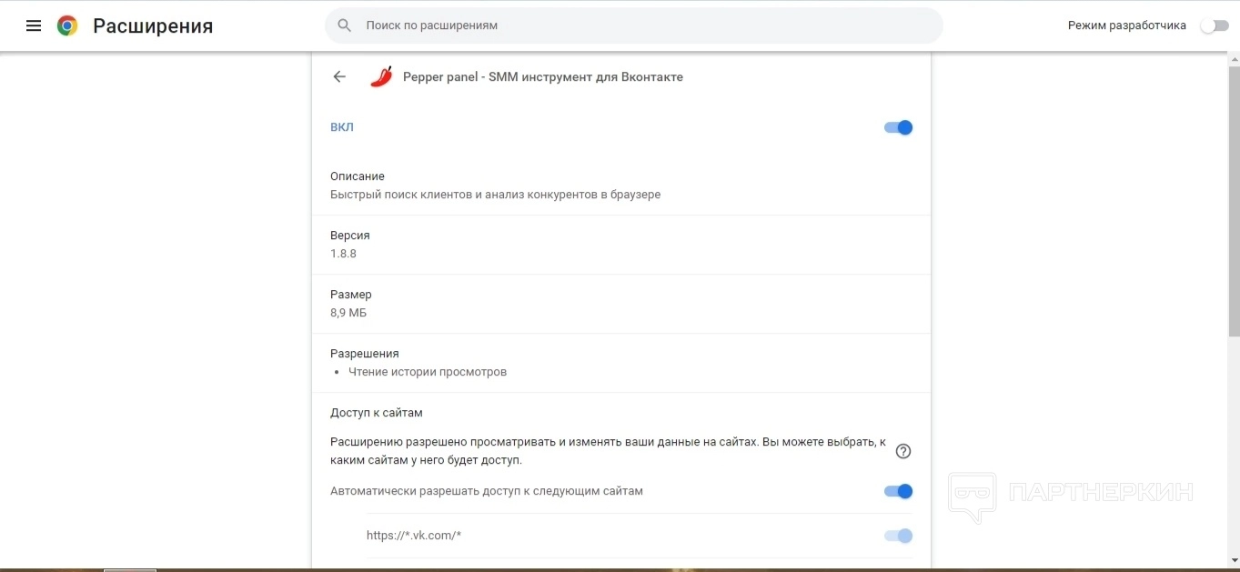 Помимо официального сайта сервиса, с которого и проводятся все необходимые анализы аудитории, поиск потенциальных клиентов и многое другое, у создателей есть также веб-расширение для браузера Google Chrome.