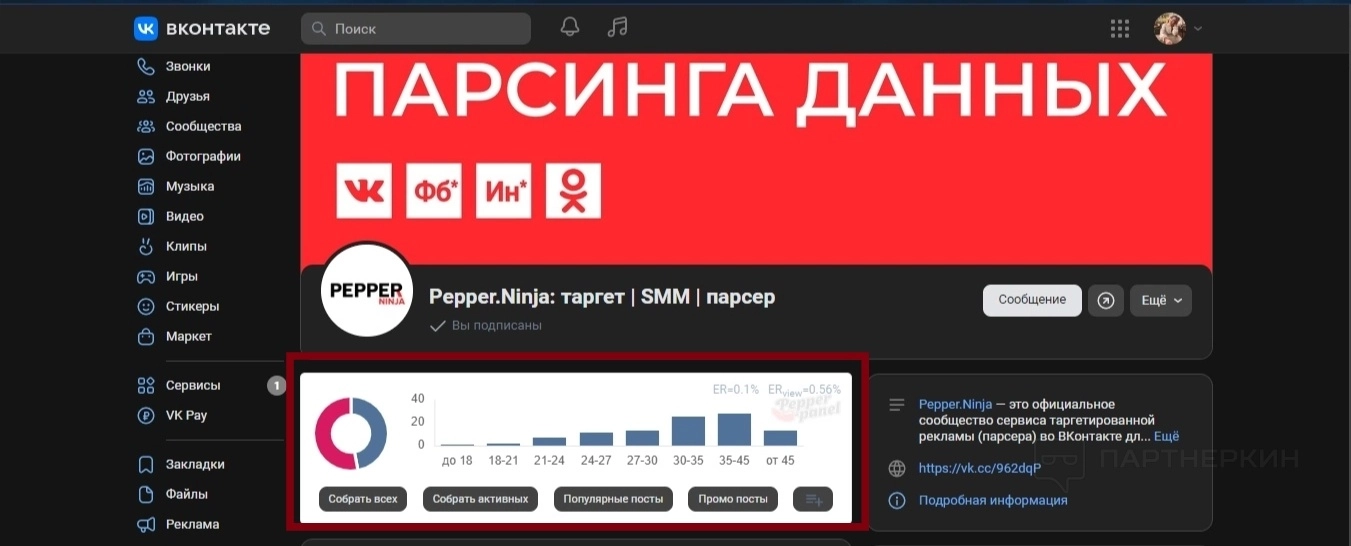 - Промо-посты — расширенная статистика по своим промо-постам (доступна в рекламном кабинете).