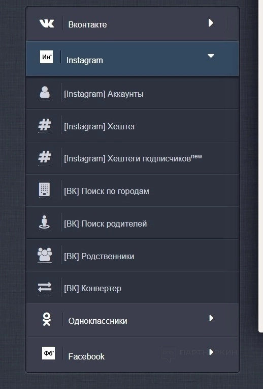 Для социальной сети Instagram* к использованию доступно лишь 7 самостоятельных парсеров:
