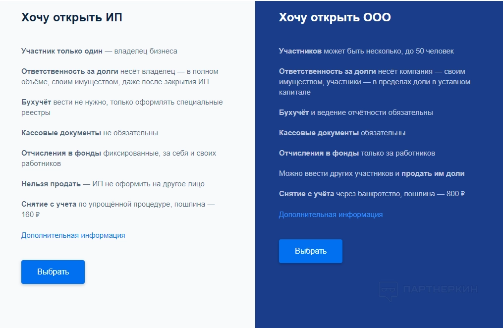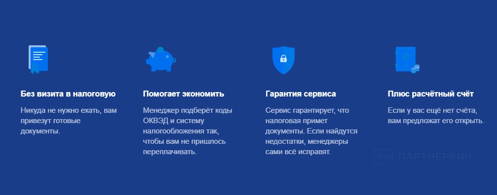 Сервис поможет зарегистрировать бизнес: подготовить документы и подать их в налоговую. Для этого необходимо заполнить анкету (она отличается для ООО и индивидуальных предпринимателей).