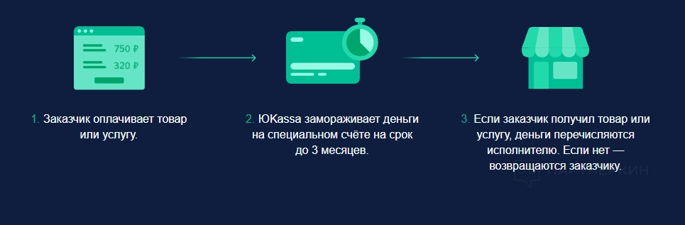 Безопасная сделка пригодится для бизнес-процессов. Для удобства можно установить виджет — тогда клиенты будут платить без перехода на сайт. Опция работает по следующему принципу: