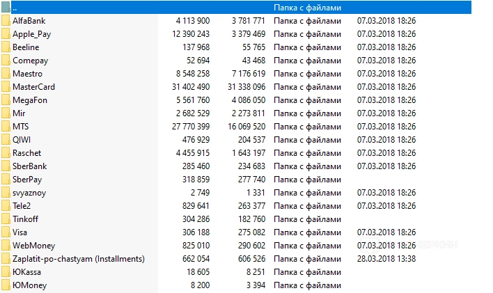 После клика на раздел «Логотипы способов оплаты» скачается архив, в котором представлены лого разных компаний (Beeline, Tinkoff, Qiwi и других).