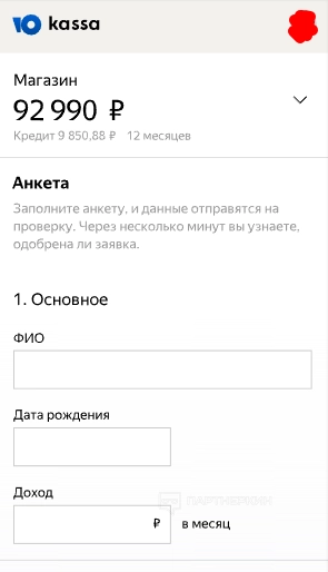 3. Пользователь заполняет анкету (указывает имя, дату рождения и доход в месяц). После проверки станет известно, одобрена ли заявка.