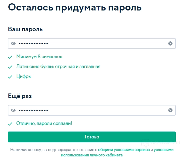 3. Придумать пароль и подтвердить его. Нажать кнопку «Готово».