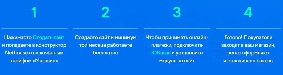 Клиент может создать интернет-магазин на конструкторе Nethouse. Как это работает: