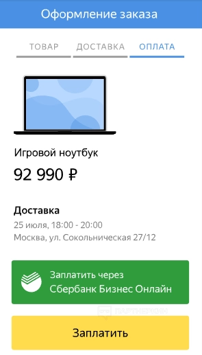 1. Клиент оформляет заказ (например, игровой ноутбук) и оплачивает его через СберБизнес.