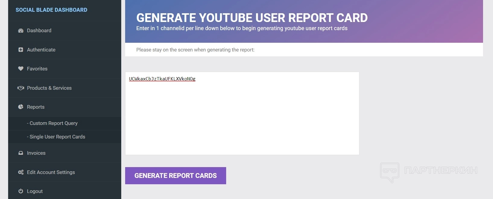 Начало работы в Socialblade