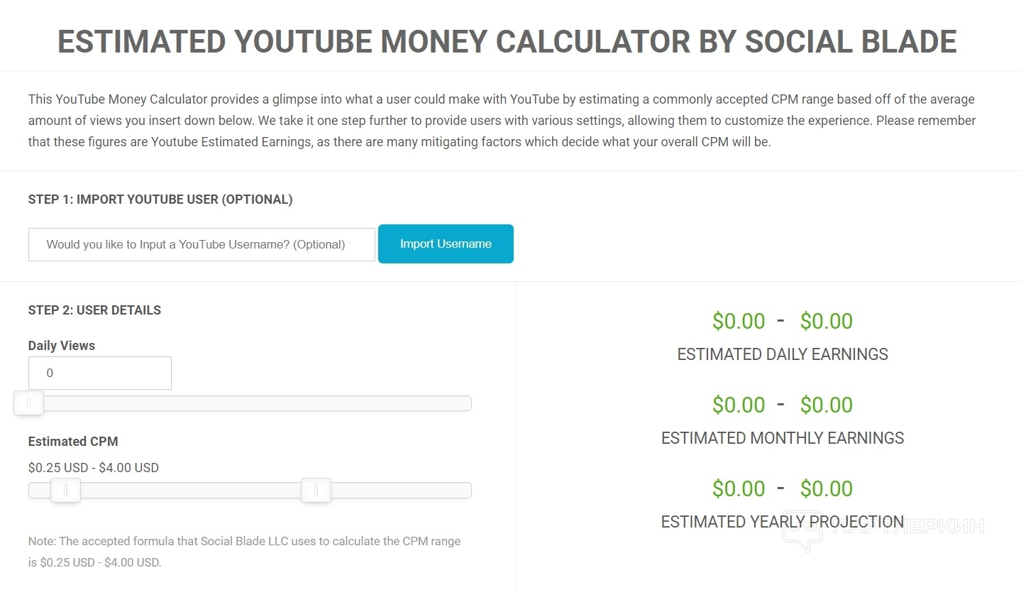 - калькулятор денег на YouTube.