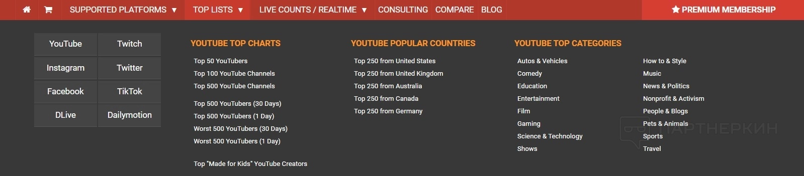 - Лучшие списки. Опция позволяют увидеть, у кого наиболее эффективный аккаунт в той или иной категории. Можно просматривать каналы с наибольшим количеством подписчиков по всему миру или отсортировывать их по странам или категориям. Лучшие списки полезны для авторов, чтобы знать, кто является лидером, а также для брендов — кто является одним из инфлюенсеров, с которыми можно работать.