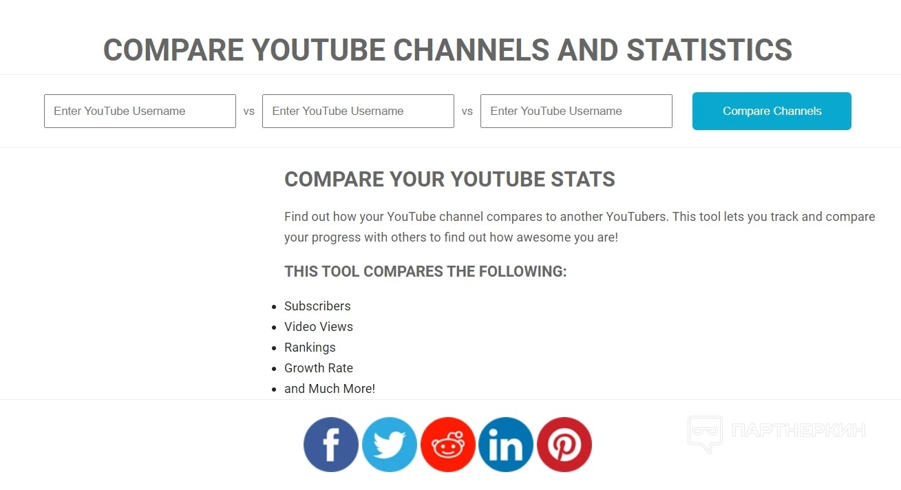Заказчик может сравнить подписчиков и зрителей не более чем с 3 каналов YouTube. Данные и KPI отображаются в виде цифр и в виде графиков, которые включают расчетный доход, ежедневные точки данных, прогнозы на будущее.