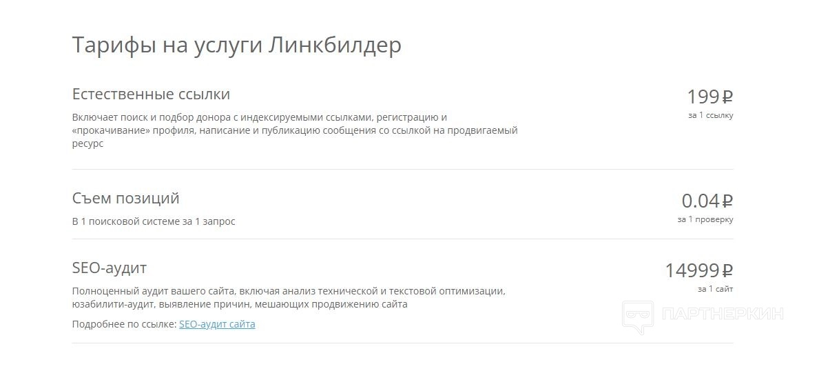 Также на сервисе можно заказать SEO-аудит сайта, включая техническую и текстовую оптимизацию. Специалисты сервиса проверят веб-ресурс и составят детальный отчет с описанием всех проблем, а также предложат варианты его улучшения и советы по комплексному продвижению. Услуга стоит 14999 ₽.