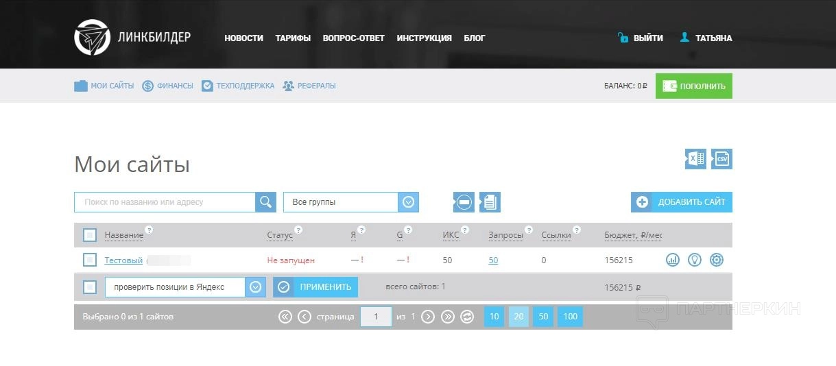 - Ссылки . Здесь указывается количество размещенных/заказанных ссылок на внешних площадках. Если вы еще не заказывали продвижение, то эта колонка будет пустой.