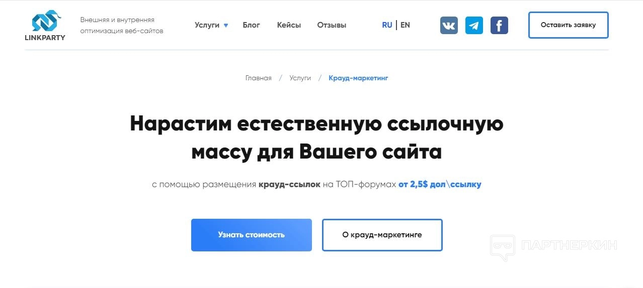 - Крауд-маркетинг. От 2.51$ за ссылку при продвижении на СНГ, от 5$ – при продвижении на запад.
