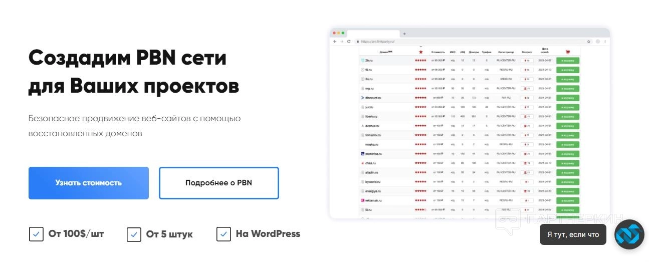 - PBN сети. Доступны тарифы Light (5-10 сайтов, 99$ штука), Boost (10-20 сайтов, 89$ за штуку), Mega (более 20 сайтов, стоимость рассчитывается индивидуально).