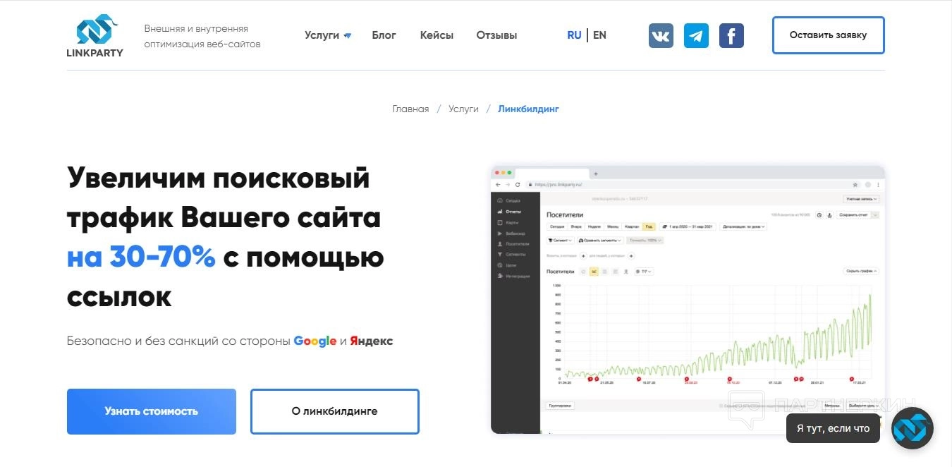 Клиенту гарантируется увеличение трафика и вывод веб-ресурса на топовые позиции в поисковых результатах уже через 3 месяца. По отчетам сайта, средний прирост трафика у их клиентов составляет 30-70%.