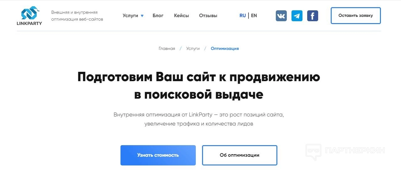 - Внутренняя оптимизация. Стоимость рассчитывается индивидуально в зависимости от типа сайта и объема работ.