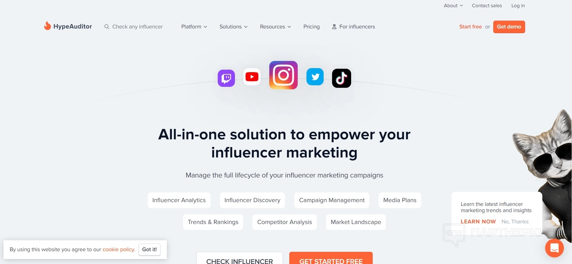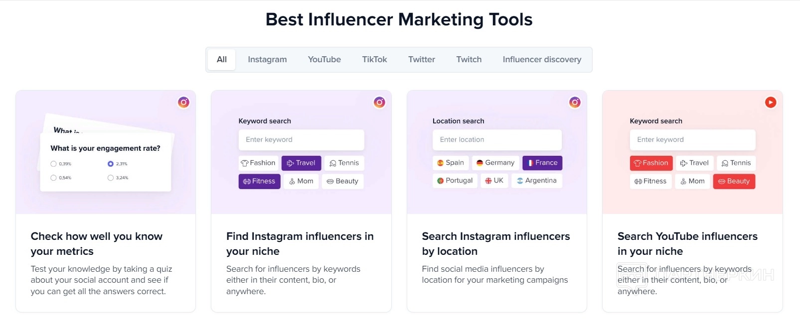 HypeAuditorдля предоставления сводок анализирует тенденции и рейтинги в социальных сетях.