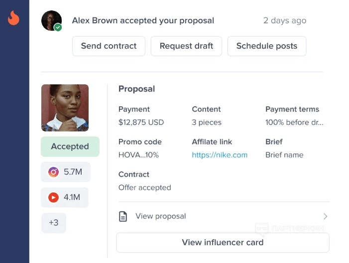 Есть опция для управления контентом. Можно настроить публикацию только после одобрения заказчика, либо без необходимости утверждения, чтобы блогер публиковал контент самостоятельно. Блогерам можно предоставить инструменты продвижения — образцы товаров, промокоды, ссылки.
