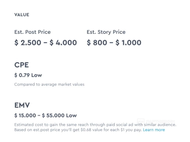 - Мгновенная оценка KPI . Система автоматически рассчитывает процент целевой аудитории, уровень вовлеченности, CPE для Instagram*, CPM для YouTube, EMV, ROI.