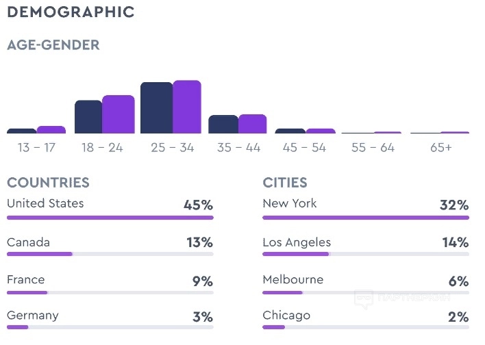 - демографию аудитории (расположение, гендерно-возрастное разделение, интересы) — ее можно сравнить с портретом своей ЦА;