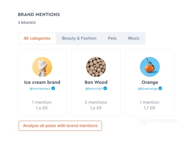 Доступна функция Анализ содержания. Она позволяет узнать, какие бренды упомянул блогер контенте. Бизнес сможет понять, какая аудитория создателей контента может быть интересна, и оптимизировать маркетинговую стратегию.