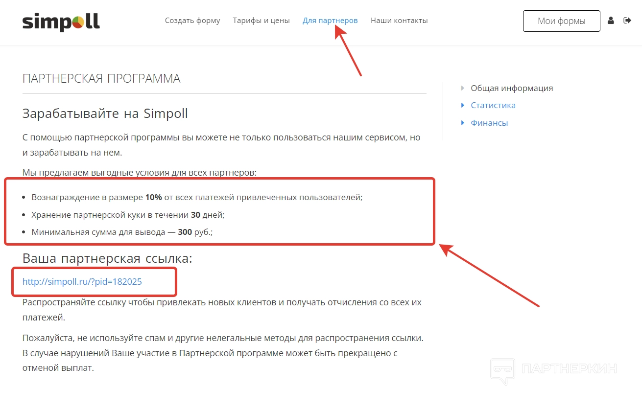 Для ознакомления с условиями партнерской программы переходим в раздел «Для партнеров». Там пользователь найдет партнерскую ссылку и размер вознаграждения.