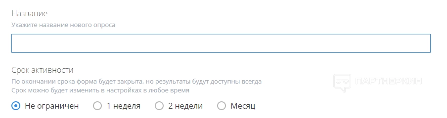 Выбрав анкету, пользователю нужно настроить несколько блоков. В первую очередь задаем название и выбираем срок активности: