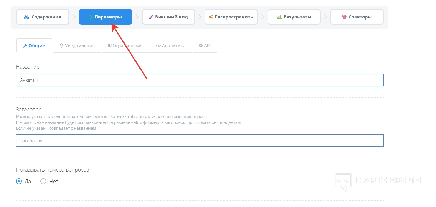 - заголовок анкеты;