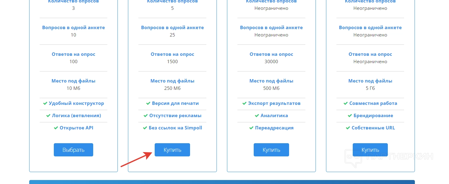 | Ответов на опрос | 100 | 1 500 | 30 000 | Без ограничений |