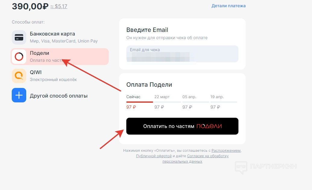 Оплачивать услуги можно частями, выбрав сервис «Подели».