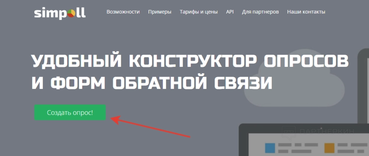 Заходим на сайт и в левой части экрана жмем на зеленую кнопку «Создать опрос». В открывшейся форме указываем электронную почту, пароль и жмем на кнопку регистрации.