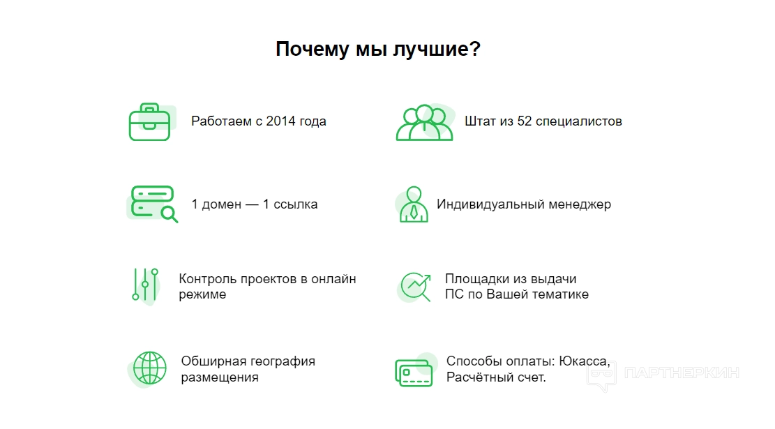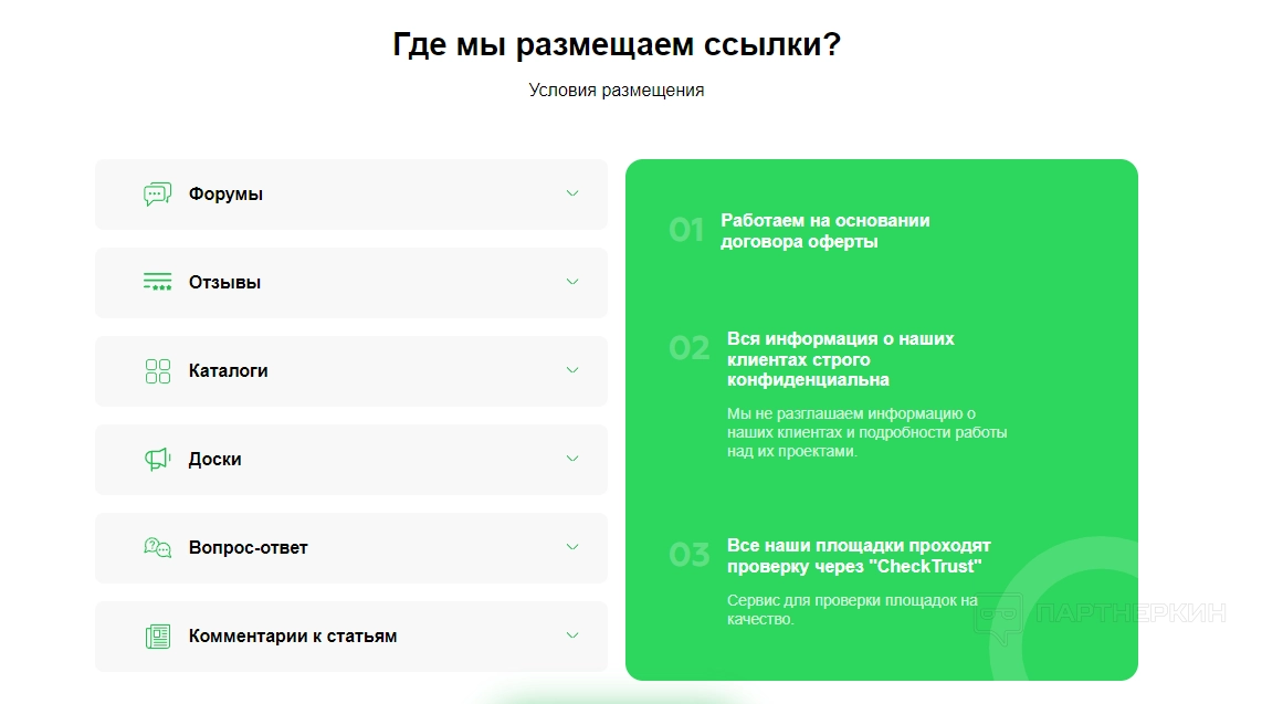 - Партнерам . Раздел с особенностями и условиями партнерской программы.
