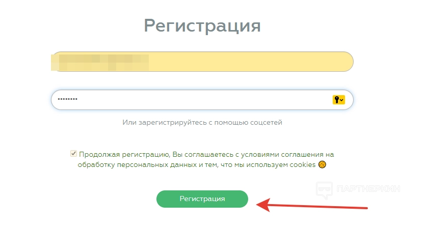 На следующем этапе откроется форма, где нужно указать электронную почту/пароль и нажать на кнопку регистрации.