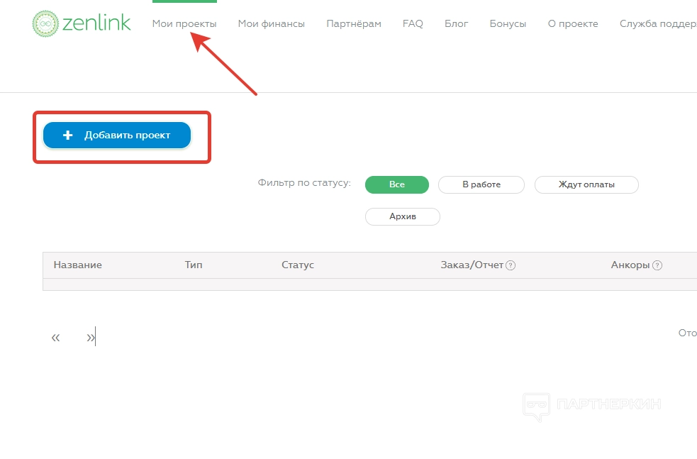 Созданный проект отобразиться на главной странице раздела «Мои проекты» в специальной таблице. Система фильтрации позволяет разделять проекты по статусам: