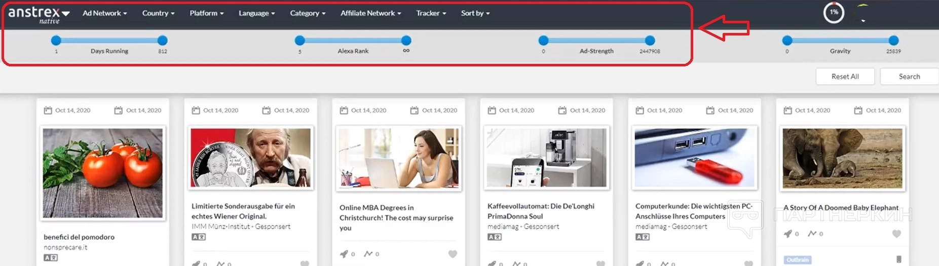 - Партнерский сетевой. Помогает отображать или скрывать результаты из определенной партнерской сети. Инструмент нативной рекламы охватывает 200 партнерских сетей, push-рекламы — более 250, поп-рекламы — более 100.