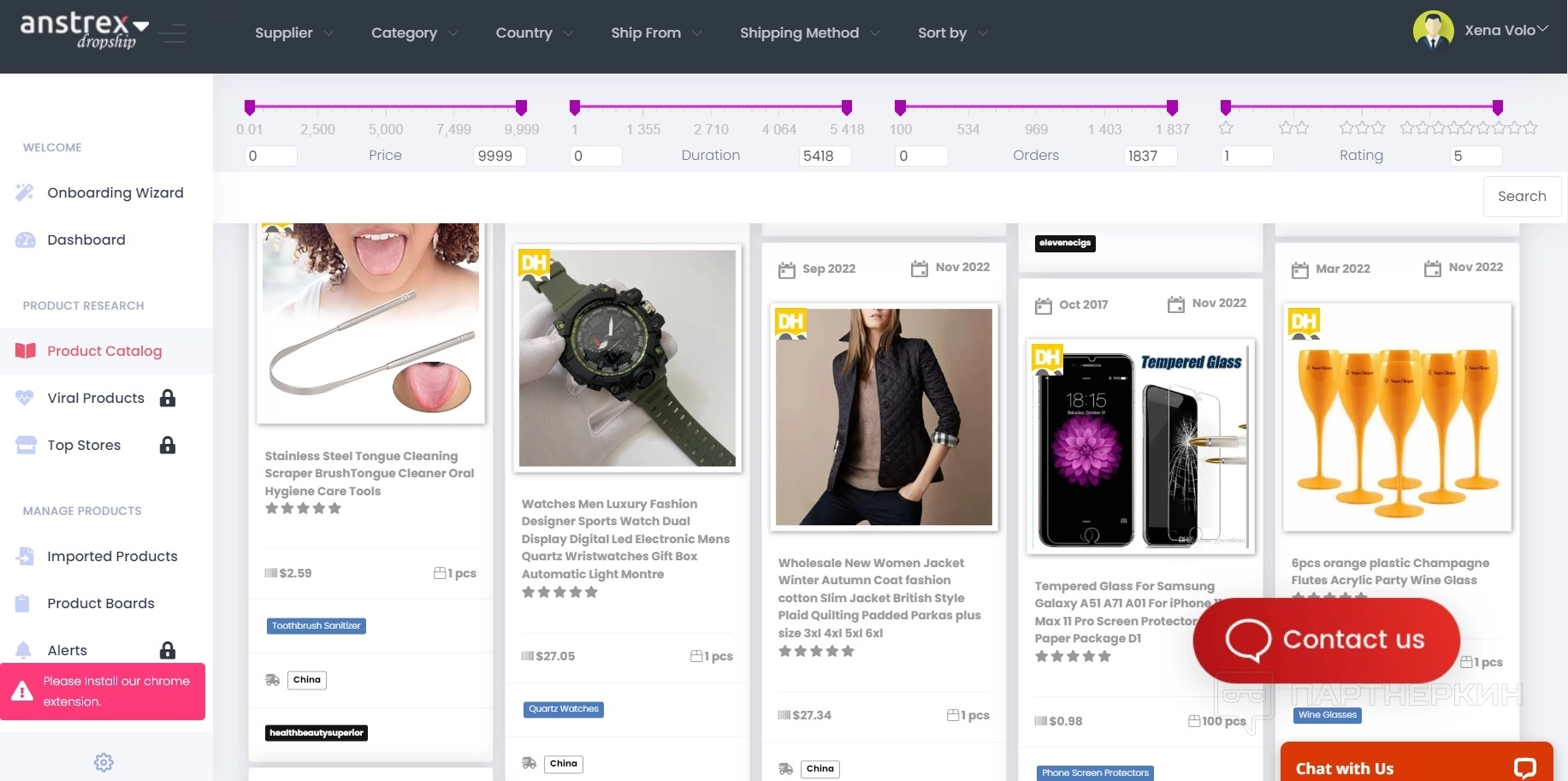 Можно отсортировать список товаров в зависимости от поставщика, категории, страны распространения и страны происхождения, способа доставки. Есть возможность связать свою учетную запись Shopify с платформой, чтобы добавлять товары в несколько кликов.
