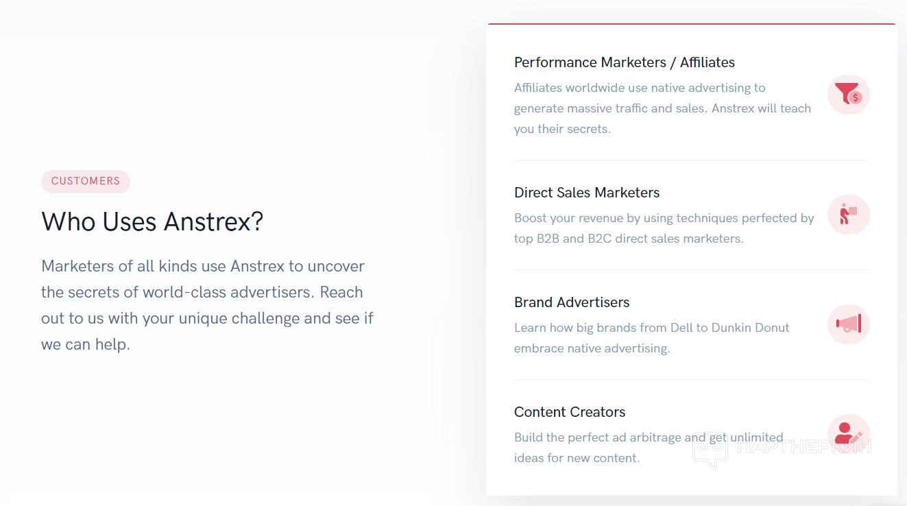 В открытом доступе можно найти скидки и промокоды до 20% на оплату услуг сервиса; бывают акции, приуроченные к Черной пятнице. Anstrex предоставляет возможность дополнительного заработка: реферальная программа с выплатами 50% комиссионных за новую регистрацию в первый месяц и 25% пожизненных комиссий.