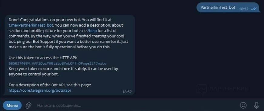 Далее необходимо обратиться к официальному боту Телеграма, через который происходит регистрация всех сторонних пользовательских ботов — BotFather . Это необходимо для получения специального API токена, который нужен для дальнейшей работы.