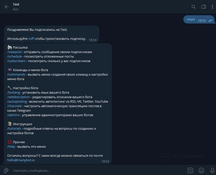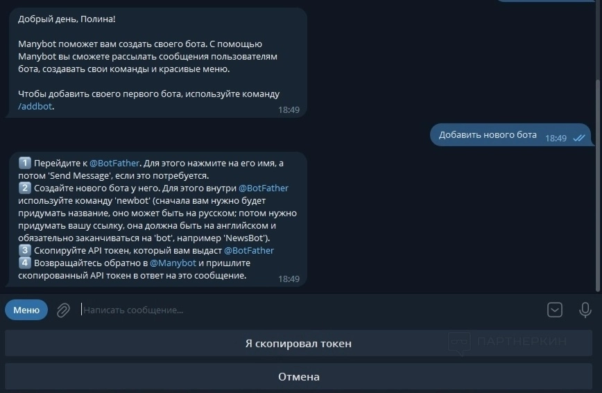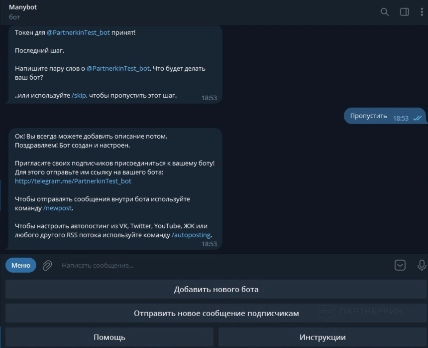 - ознакомиться с инструкцией, если возникли проблемы во время настройки бота и так далее.