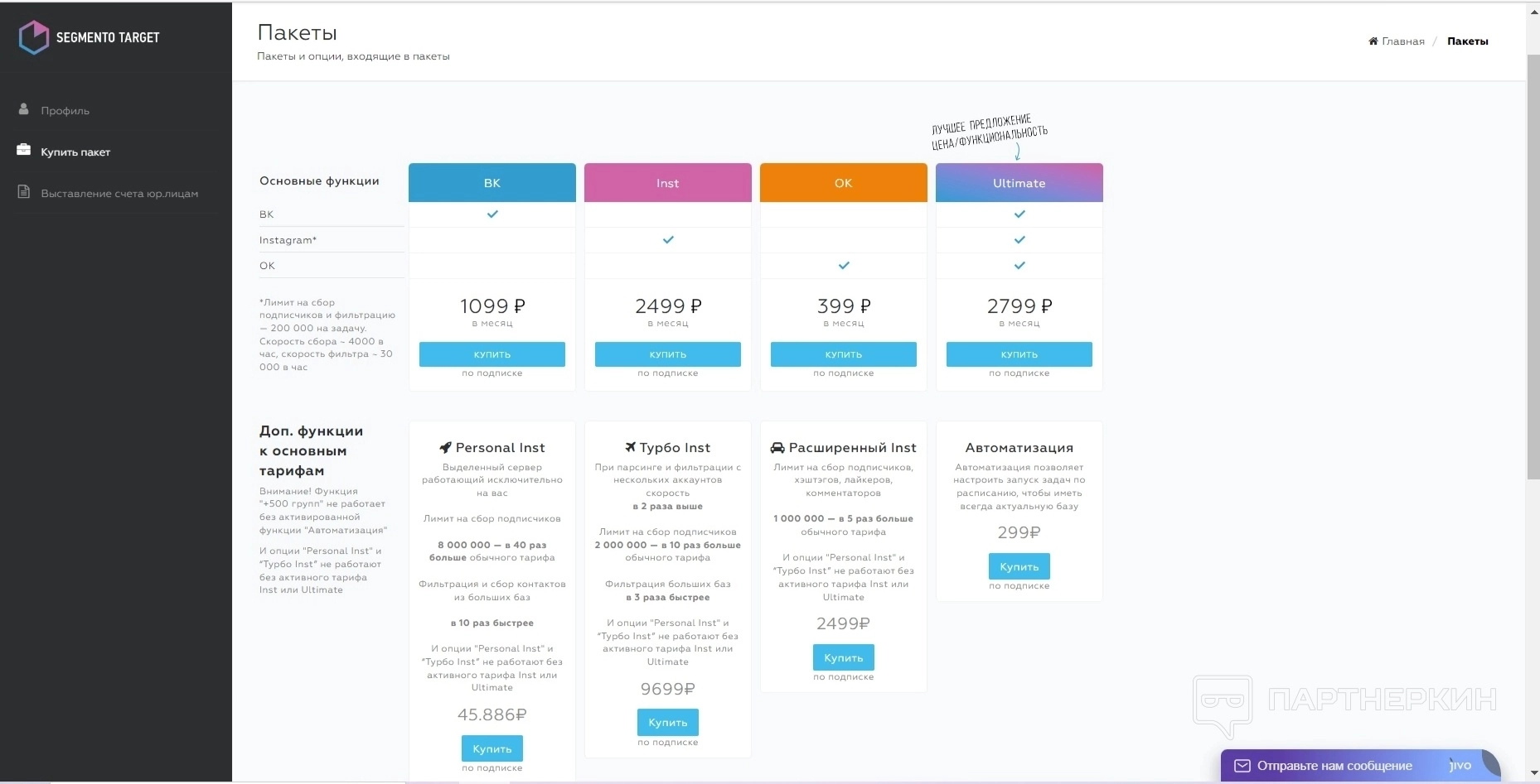 В целом, данный сервис для парсинга аудитории имеет практически все необходимое для анализа и поиска целевой аудитории. Большинство инструментов можно протестировать до покупки платного тарифа, но конечно же с ограничениями.