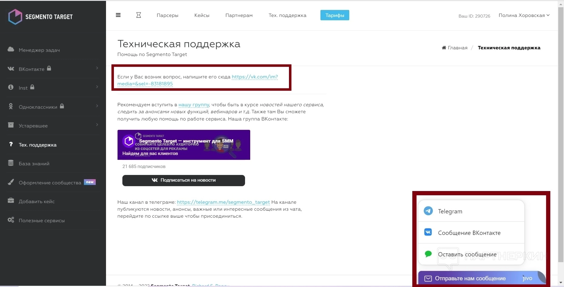 Раздел техподдержка отвечает за помощь новичкам или уже давно зарегистрированным пользователям. В самом разделе можно написать письмо со своим вопросом или проблемой на указанный адрес (а именно в социальной сети ВКонтакте по ссылке). Однако сервисом для связи также предусмотрены такие площадки как Telegram и сам веб-сайт. Соответствующая иконка техподдержки находится в самом низу страницы в любом разделе сайта.