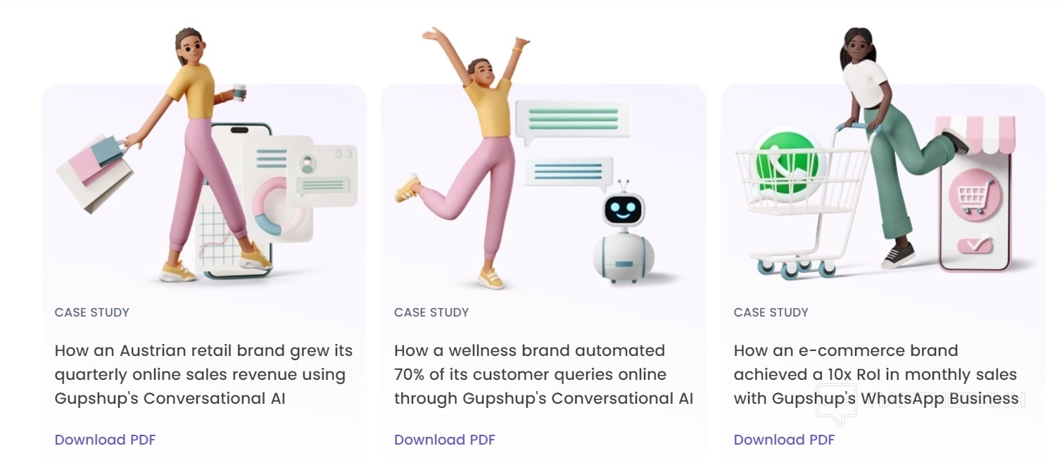 Gupshup.ioпредприниматель может увеличивать доход, продавая нужным клиентам в нужное время на тех каналах, где эти клиенты собираются. Можно задействовать созданные с помощью Gupshup.io цифровые каталоги, индивидуальные рекомендации, платежи в один клик, чтобы привлечь больше пользователей в социальных сетях и Интернете. Есть опции для возвращения клиентов, взаимодействия по поводу брошенных корзин.