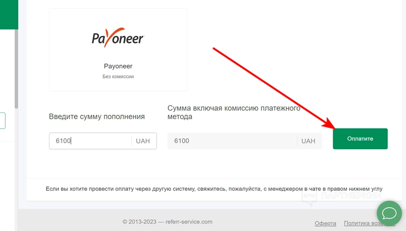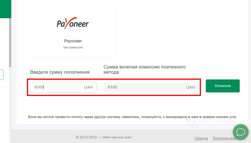 - Укажите необходимую сумму. Система сразу рассчитает комиссию.