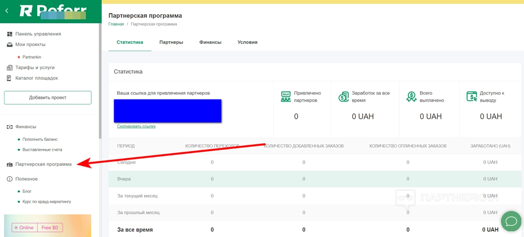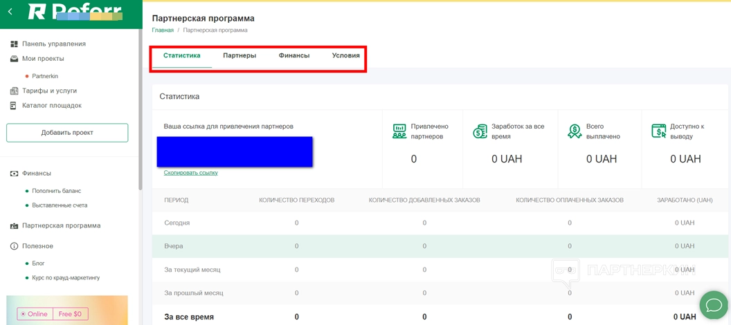 - Финансы. Отдельная статистика прибыли по партнерской программе.